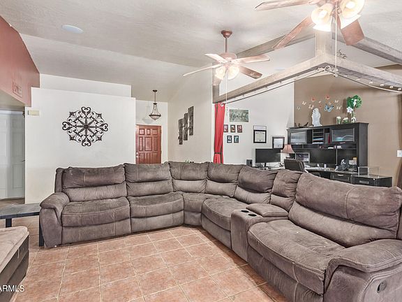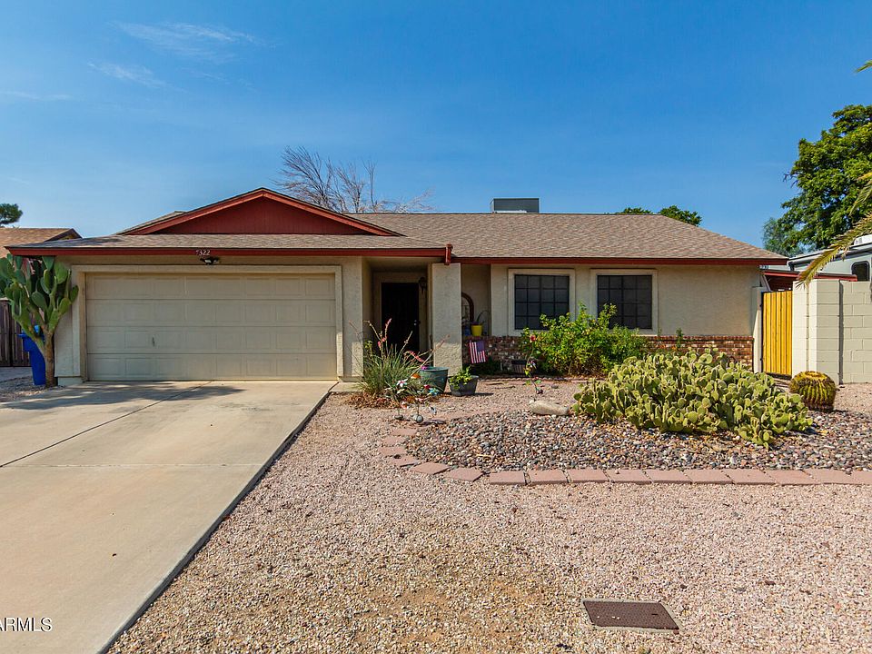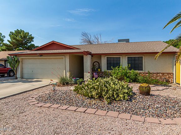 Home, sweet home! Adorable 3 beds, 2 baths property waiting for you in Mesa! Lovely facade, a 2-car garage, an RV gate, and a low-care landscape will greet you upon arrival. Enter to discover a perfectly flowing open layout featuring neutral tile flooring, handsome & complementing palette, vaulted ceilings, pre-wired surround sound, and a stone-accented fireplace. You'll love cooking in this magazine-cover kitchen boasting dark wood cabinets, SS appliances, tile backsplash, and an island w/a breakfast bar. Have a good night's sleep in this romantic main suite showcasing separate backyard access and a private ensuite. The backyard is an Oasis providing a relaxing covered patio, refreshing pool, artificial turf, swaying shade trees, and a storage shed. Don't miss it. Hurry! Visit right now!
