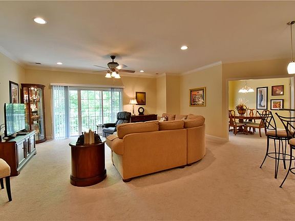 Largest condo in development two bedrooms, den, granite kitchen upgraded baths, moldings, large patio overlooking the woods. It also has a storage room which is hard to get!