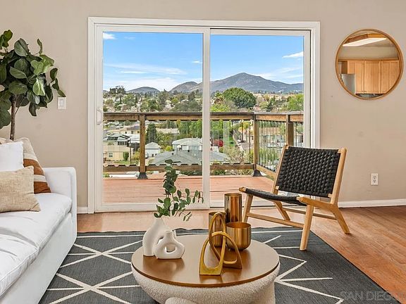 Enjoy stunning panoramic views from this La Mesa hills gem. Great family home on a quiet street with wonderful neighbors. Walk through the entry and immediately see views through the sliding glass doors that lead out to a large deck that expands the width of the home. Open concept kitchen/dining/living area that boasts a classic but updated design that offers an inviting space for entertaining or relaxation. Master bedroom has an en-suite bath, with dual sinks and a clawfoot tub. 3 bedrooms and 2 baths upstairs, but walk downstairs and you’ll find a large open/rec/family room to your left that leads out to another deck level with a spa. To your right you’ll find another bedroom and bath. Enjoy views, entertainment and relaxation from 3 different deck levels. HVAC with hospital grade hepa filtration system. Tons of storage, water tank, and Solar is leased, low monthly payments. Owned Solar battery storage by SunFusion Energy Systems. Great location, easy freeway access, walk to Helix High School.
