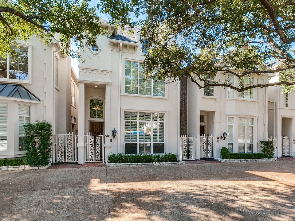 This beautiful free-standing (no shared walls) 2-bedroom townhome has vaulted ceilings and walls of windows providing abundant natural light. Open floor plan. Extensive wood flooring. Living room has a fireplace with gas logs, 22-foot ceiling with fan and Plantation shutters. Updated kitchen has stainless appliances, SubZero refrigerator, gas oven, gas range with overhead venting system, electric oven. First floor master bedroom has ensuite bath with tub, shower, large walk-in closet. Upstairs are a game room, large bedroom, second bath and a bonus room that is perfect for a home office of exercise room. The game room could be used as a third bedroom. 8-foot solid-core doors throughout. Large utility room with sink and cabinets. Two 50-gallon water heaters. Oversized 2-car garage and several parking spaces in front. Gated patio with gas line. Just two blocks to Inwood Village for excellent shopping and dining. Close to Dallas Love Field.