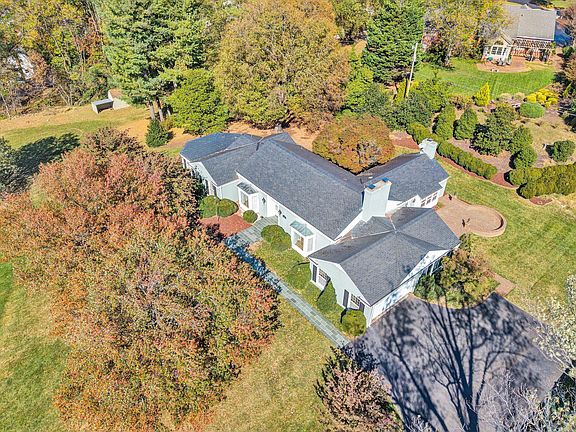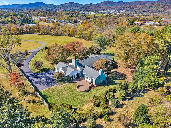 Over 3700 sq ft on one level with a manicured 6.33 acres from which you can enjoy stunning views. Located across from Hollins University, this brick home with slate roof and quality finishes exudes the charm of its builder's vision. The owner's suite offers a spa bath and a huge walk-in closet with generous built ins. This home features spacious rooms, sparkling hardwood flooring and beautiful mouldings. The kitchen opens to a huge family room where the new owner will doubtless spend countless chilly evenings cozied up by the fireplace. Built-in shelving and cabinets along with a wet bar make this an ideal entertaining space. An approximate 400sq ft sunroom features tile flooring. Detached sheds make lawn equipment storage a breeze. Builder's personal home when built