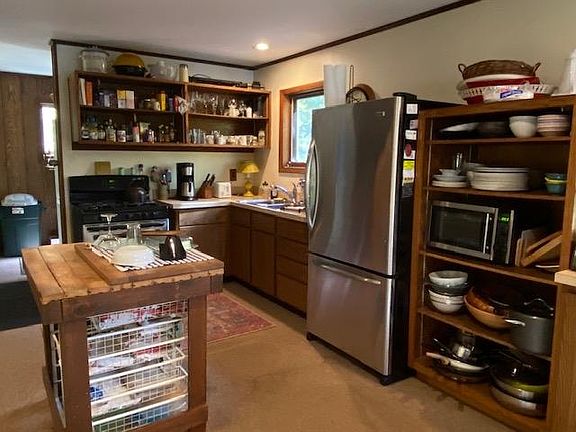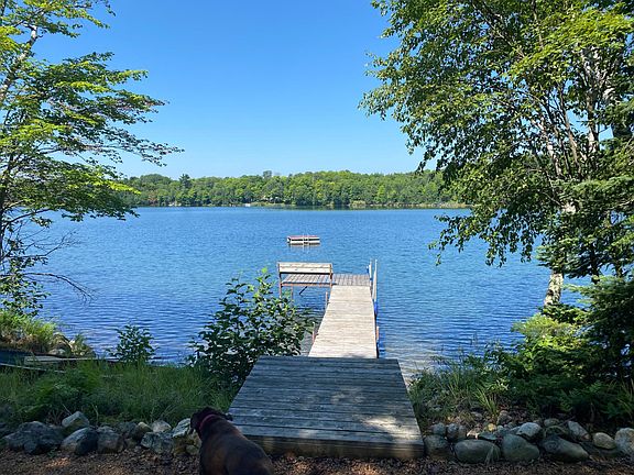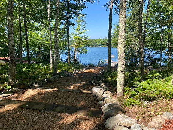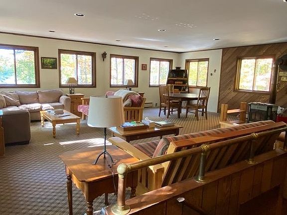 Spacious, rustic family compound on crystal cleaar, no public access Carlin Lake. Huge sleeping capacity and oversized public rooms. Casual northwoods interior ambiance. Ideal gentle sloping lot to great swimming frontage. Faces west for lovely sunsets.