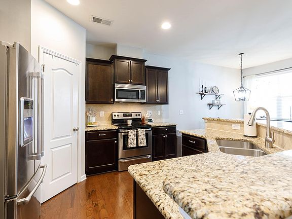 3 bedroom, 2.5 bath townhome located in the wonderful Woodlands neighborhood! Hardwoods on main. The kitchen features granite counter tops, bar seating area, stainless steel appliances, walk in pantry, and 42" cabinets. Kitchen is open to dining room area and family room. The family room features a corner fireplace. Enjoy the privacy of the fenced in patio/backyard with pavers or the deep covered porch in front. Upstairs you will find the master retreat with tray ceiling, walk in closet and large bathroom with separate shower, large soaking tub and dual vanities. 2 additional secondary bedrooms share a full bath. Large laundry room conveniently located upstairs. 1 car garage with finished and painted walls + epoxy flooring. The Woodlands is conveniently located beside India Hook Elementary and features a community cabana & pool.