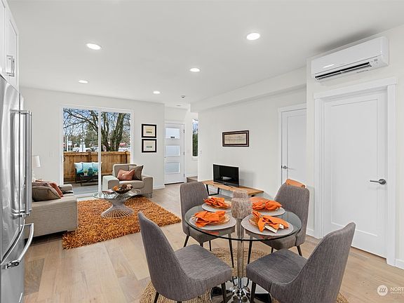 New Modern Spacious end unit home with tall ceilings on very nice street of homes in Roosevelt, Walk to Light rail station, Restaurants, Grocery's, Breweries & Coffee ! Wide plank French oak hardwood floors, Painted millwork Large gourmet kitchen with Custom Shaker cabinets, Quart counters, undermount sink, professional Kitchen aid stainless appliances, Designer lights, Custom designed Steel Hand rails, Oversize Master bedroom with vaulted ceilings & tile bath, Both bedrooms feature on suite baths, Mini splits for heat & AC, designated off street parking off alley. Photos of of Model unit 7326 B. Fenced rear yard with gate to parking.
