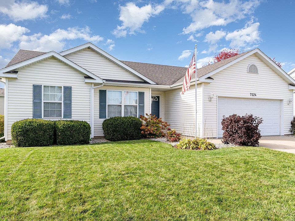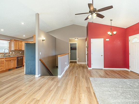 Welcome home to this well-maintained 3-bedroom, 2-bath ranch that blends comfort and convenience in a single-level layout. Vaulted ceilings and an open floor plan invite natural light throughout the living space. A spacious family room connects seamlessly to the dining area and kitchen, where new carpet and luxury vinyl plank flooring add a fresh touch. Oak cabinetry, ceramic tile backsplash, and updated appliances make the kitchen both functional and charming. Designed with privacy in mind, the split-bedroom layout includes a generous primary suite with his-and-her closets and an ensuite bath featuring a walk-in shower. Both bathrooms have been thoughtfully updated with new vanities and flooring. Downstairs, the finished basement offers a spacious versatile space -- perfect for movie nights, game days, or entertaining at the built-in bar. This standout space nearly doubles your living area! Step outside to enjoy a fully fenced backyard complete with a shed, stone firepit, patio, and pergola—ideal for relaxing or hosting gatherings. This gem won’t last long, text your favorite Realtor today!