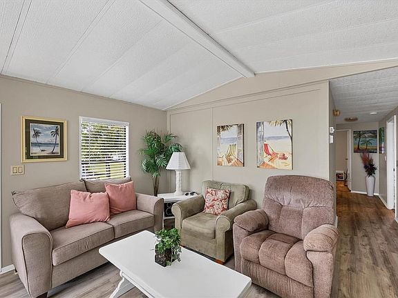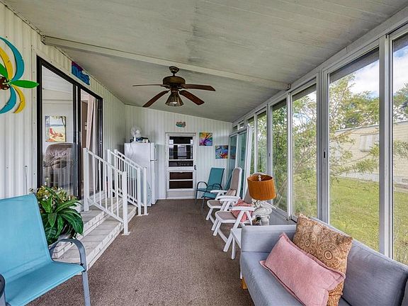 Welcome to this beautifully maintained, fully furnished TURN-KEY home located in the highly sought-after waterfront community of The Villages of Holiday Lakes. From the moment you step inside, you’ll feel right at home. The cozy, open-concept living space is designed for comfort and ease, with the living room flowing seamlessly into the updated kitchen—perfect for entertaining family and friends. Enjoy abundant natural light thanks to the home’s southern exposure, which brightens both the kitchen and living area. The kitchen is thoughtfully updated and equipped with everything you need, whether you're looking for a seasonal getaway, a permanent residence, or a great investment rental. With 3 bedrooms and 2 full baths, there’s plenty of room for guests to relax and enjoy their stay. A sliding glass door leads to a spacious, climate-controlled Florida room, offering additional living space, a full-sized washer and dryer, and a convenient storage closet. Located on a greenbelt, this home offers added privacy and a peaceful setting. Bring your golf cart and enjoy all that this golf cart-friendly community has to offer! Community amenities include:2 swimming pools, Tennis courts, Shuffleboard, BBQ area, Craft and woodworking rooms, Recreation hall with full kitchen, Additional laundry facilities And much more! This is not a 55+ community and, per county records, not located in a flood zone—adding peace of mind to your Florida lifestyle. Whether you're looking for a full-time residence, seasonal escape, or income-producing property, this turn-key gem is ready for you!