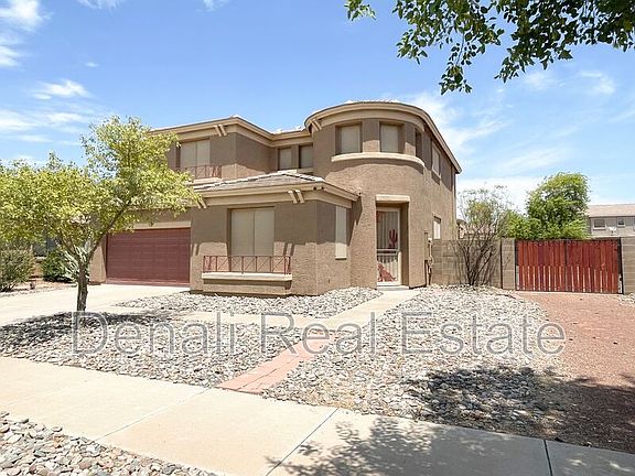 No Application Fees! Spacious 4 bedroom, 2.5 bathroom Phoenix home located in Estrella Village. This home features nearly 2,400 square feet of living space with upgrades throughout including wood laminate and tile flooring with no carpeting, neutral paint, upgraded window blinds, and ceiling fans in each room. The layout includes a large open family room, separate living room, and a versatile bonus living space upon entry. The open kitchen offers a breakfast bar, dining area, separate pantry, ceramic top electric range, built-in microwave, dishwasher, and refrigerator. The oversized primary suite includes a large walk-in closet, double sink vanity, garden tub, and separate shower. All bedrooms are located upstairs, and a convenient second-floor laundry room includes a washing machine and dryer. The backyard is perfect for entertaining with a grass area, built-in barbecue, covered patio, large covered ramada, and an RV gate with a cement pad for extra parking or storage. Estrella Village provides easy access to I-10 and Loop 202 for commuting throughout the West Valley and downtown Phoenix. The home is located near Cesar Chavez Park and Lake, the Aguila Golf Course, and multiple hiking and biking trails at South Mountain Park.