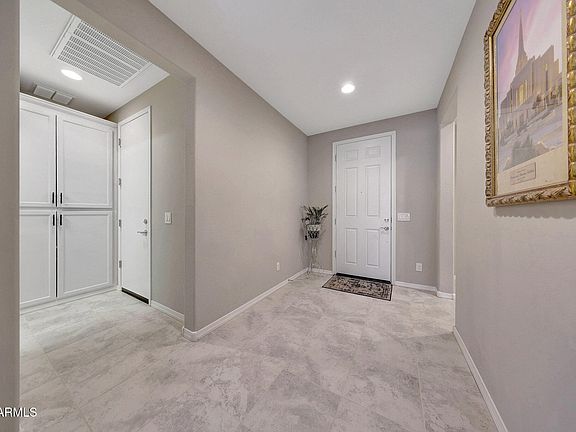 Beautiful split floorplan home nestled next to a private landscaped area in secluded North Peoria Aloravita. Open airy & well maintained 3 bedroom + enclosed den + 3 car garage. Light filled great room concept with 2 huge center slider patio doors perfect for entertaining. Custom millwork touches elevate walls in multiple rooms. Upgraded extension off the back of the house at the Primary, Dining Room & Patio. Gourmet kitchen features the Chefs cabinet layout, modern quartz island with waterfall edge complete with designer pendant light fixtures, gas stainless steel cooktop and stainless built in microwave wall oven. Calm, clean, neutral finishes include an extended no threshold glass walk-in shower at the Primary bathroom. All found in this quiet, walkable community with mountain views.