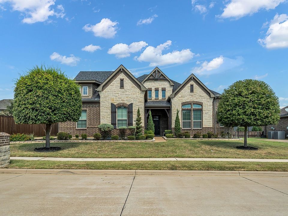 Priced below market value in the prestigious gated community of Calender Crossing. This John Houston Custom Home is both stunning and well maintained. It features 4 bedrooms, 2 full baths, 1 half bath and located in the Mansfield ISD. One bedroom can easily be converted to a home office. This thought out design includes an open floorplan with modern designs and a split bedroom arrangement. It also offers a massive formal dining area, arched entryway openings throughout, tray ceilings and many other luxurious finishes. This state of the art kitchen offers a spacious kitchen island, granite countertops, stainless steel appliances, brand new microwave, gas cooktop, deep soaking sink, knotty alder custom cabinets, walk in pantry, eat-in area and is open to the family room which features a beautiful stone gas log fireplace with mantle. As you enter the master suite you will find that it is very spacious and leads into a master bathroom that has two vanities, soaking tub, separate shower with a sitting bench and a huge walk-in closet. The floor print of this home is versatile and can fit a variety of lifestyles. Let's not forget this home also offers an oversized 3 car garage and plenty of additional outdoor parking in the enormous driveway. Exterior features host a beautiful curb appeal which includes a well maintained landscaped yard, trees, covered front porch, extended back patio, wrought iron fence that separates the side yard from the driveway and plenty of space for those outdoor gatherings. Location is ideal and nestled in a gated community close to shopping and major highways. Schedule your private showing today. Updated repairs that have been completed include - AC units serviced 9-18-25, Carpet professionally cleaned 9-26-25, Roof repairs, Irrigation and Electrical also recently repaired. Receipts are located in the document section.