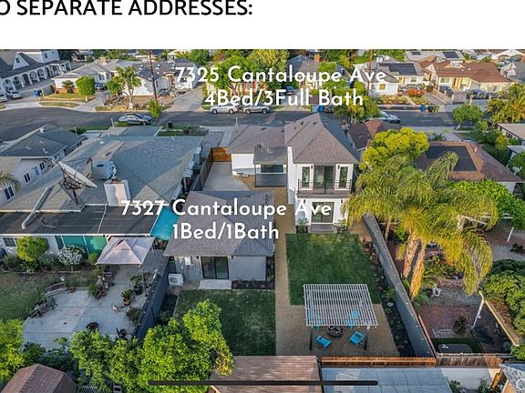 This is your chance to get into an immaculate property with all the right upgrades, a property you'll be proud to own! Be the first one to live in this great house with a one bedroom ADU, it's practically NEW CONSTRUCTION. Welcome to 7325 & 7327 Cantaloupe Ave - on a beautiful & walkable cul-de-sac  street in ultra-hot Van Nuys, borderline Valley Glen. The original 1194 sqft house was stripped to the studs and completely rehabbed, the seller added close to 1000 sqft addition to the main house. This is a great opportunity for a family who wants to live on the same property while having privacy, someone who wants to live in one and rent the other, or just a great full on investment as a rental property. The main house is 4 bedrooms/3 full bathrooms totaling 2,102 sqft. - the 2023 built & fully permitted one bedroom ADU measures 560 sqft. You will be awe the moment you step in as you will be overtaken by the gorgeous interior, details, and captivated by the oversized kitcken island. The main house has a total of four bedrooms and three full bathrooms - there are TWO NEWLY BUILT MASTER EN-SUITES - one downstairs and one upstairs, the second story master loft has a walk in closet, standing shower, freestanding tub, and a balcony overlooking the backyard. Both main house and ADU have their own private entrance, separate electrical meters, separate heating/cooling, and separate addresses. Upgrades include NEW electrical & plumbing, NEW kitchens, NEW bathrooms, two NEW tankless water heaters, NEW flooring, NEW roof, NEW insulation, NEW drywall, NEW double pane windows, NEW landscaping, EVERYTHING IS NEW!!! This beautiful property is located steps away from local businesses such as Ralph's supermarket, Starbucks, Norm's Restaurant, and borderline Valley Glen. Do not miss out on it and beat the summer crowd -  you'll get to enjoy the gorgeous backyard during the best time of the year.