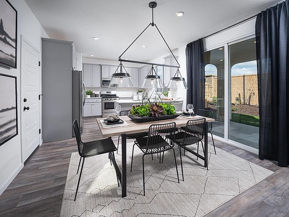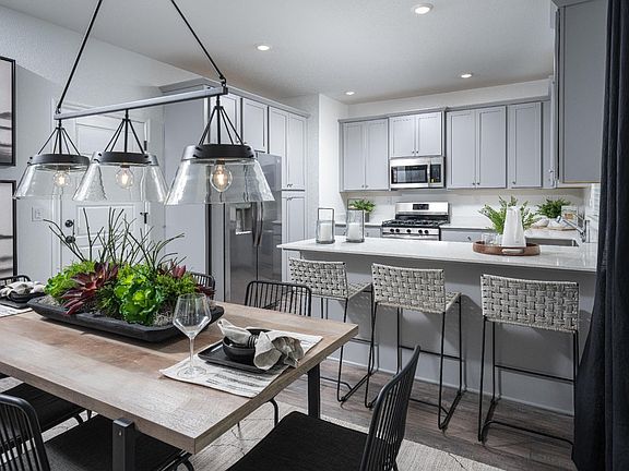 Step into this immaculate, never-lived-in former model home, offering 1,632 square feet of thoughtfully designed living space. This two-story, 3-bedroom, 2.5-bath home showcases modern comfort and style at every turn. The open-concept floor plan features luxury vinyl plank flooring throughout the main level, setting the stage for a bright and welcoming atmosphere. The gourmet kitchen is a true showstopper, complete with granite countertops, a sleek 4-inch backsplash, European-style cabinetry, and a full Frigidaire stainless steel appliance package including a gas range, ENERGY STAR® dishwasher, and built-in microwave. Upstairs, a versatile loft offers the perfect space for a home office, media area, or playroom, while all three bedrooms provide ample space and comfort. The primary suite features a spacious layout and en-suite bath. Outside, enjoy a professionally designed backyard created by a landscape architect to provide the perfect setting for entertaining or relaxing under the stars. Additional highlights include energy-efficient features and the option for buyers to either lease or purchase the solar system. Located in a desirable community close to shopping, dining, and top-rated schools.