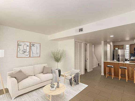 Fountain Villas offers a bright and open layout with sleek tile flooring throughout and fresh, neutral paint. The spacious living area flows seamlessly to a private patio through large sliding glass doors perfect for indoor-outdoor living.