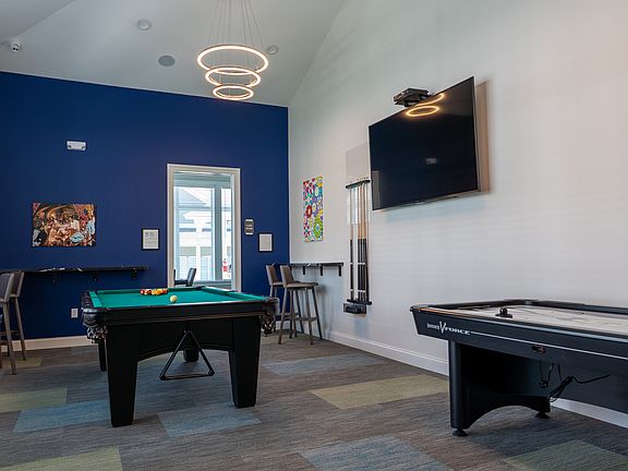 Heated resort-style poolFire pitGame roomMultiple loungesBusiness roomAttached garages