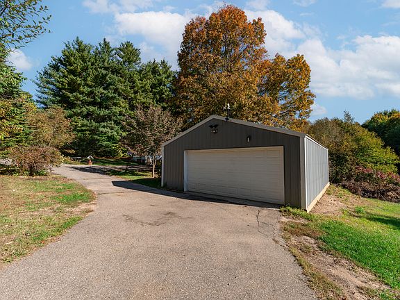 Home includes detached 2 car garage and 24x 32 pole barn with metal roof, 16 ft front overhead door with overhead door opener, 8 ft side door with manual entry.
