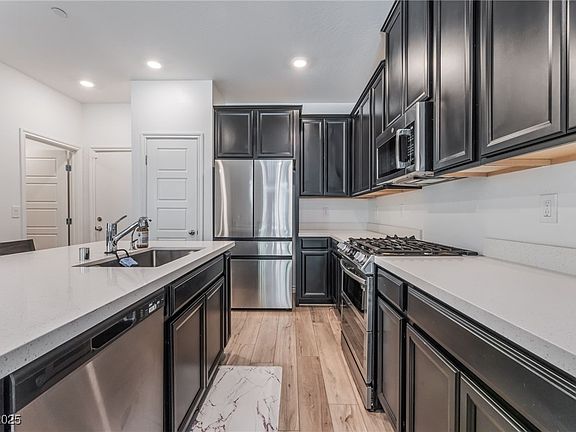 $20,000 price drop plus an assumable VA loan at 4.99 percent—modern comfort meets low-maintenance living. This townhome features a welcoming open layout designed for connection, with a kitchen that truly serves as the heart of the home. Quartz countertops, espresso cabinetry, and luxury vinyl plank flooring flow effortlessly into the living and dining areas—perfect for hosting friends, casual dinners, or morning coffee at the island. Upstairs, a spacious primary retreat with a spa-like bath invites you to recharge at the end of the day. And with no backyard to maintain, you’ll have more time to enjoy the community pool, walk your pup at the dog parks, or explore nearby parks and trails. The neighborhood’s thoughtful design, plus quick access to coffee spots, shops, and dining, makes everyday life stylish and convenient. With upstairs laundry, a 2-car garage, and an assumable 4.99% VA loan, this home blends lifestyle and smart savings seamlessly.