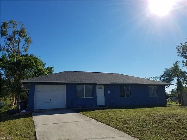 This is the PERFECT STARTER HOME or INVESTMENT PROPERTY! Home has a BRAND NEW ROOF and is on a QUARTER of an ACRE! CONCRETE BLOCK CONSTRUCTION with GARAGE! This BRIGHT HOME is Flooded with NATURAL LIGHT. GREATROOM has VAULTED CEILING, LARGE BLOCK TILE throughout, WHITE Kitchen CABINETS and Bathroom VANITY. OPEN KITCHEN to DINING AREA with SLIDERS out to PATIO! CLEARED YARD with PARTIAL FENCING. Home is on CITY WATER! NEW CONSTRUCTION HOME right next door! NO HOA FEES or RENTAL RESTRICTIONS. CONVENIENT San Carlos Park LOCATION near everything!