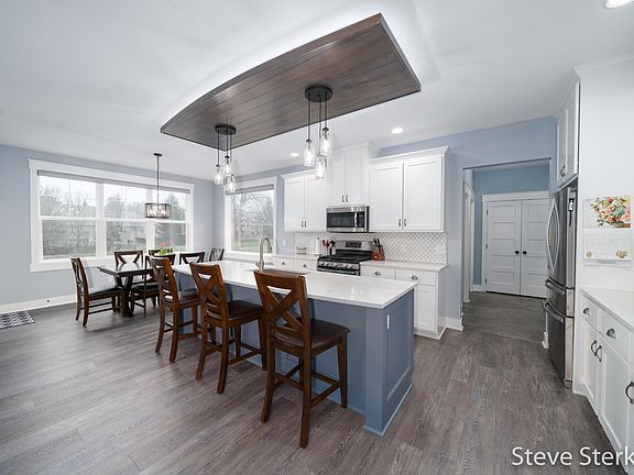 2017 Parade Winner! This open floor plan ranch has custom touches for the most discerning buyer. Master suite boasts oversized rain shower, quartz counters & upgraded fixtures along with access to deck/backyard. Conveniently located laundry, half bath and mudroom with built in lockers off 3-stall garage. Front porch and foyer welcome guests into the open concept living room with fireplace & built-ins. Enjoy the ease of remote/app controlled blinds. Custom kitchen has floating island, handmade cabinets, barn door pantry access, & Coretec HD flooring. Two large beds & full bath also on Main. Walkout basement with finished family room, wet bar, full size frig, 3 more beds & full bath. Enjoy large patio, fire pit and privacy the yard provides on one of the largest lots in the neighborhood.