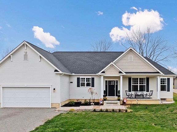 This stunning 2022 Craftsman ranch first-tier property delivers the effortless lifestyle so many buyers seek. Set on a rare .62-acre double lot, the property offers exceptional outdoor space for entertaining, recreation, gatherings, and evenings by the fire pit—a true luxury in a gated lake community. Designed for easy, single-story living, the home features an open and spacious floor plan with 9-foot ceilings, abundant natural light, and a seamless flow between living, dining, and kitchen spaces. The electric fireplace adds warmth and character to the great room. The large primary bedroom is privately positioned on its own side of the floor plan and includes a generous walk-in closet and ensuite bath—creating a peaceful retreat separate from the home's additional bedrooms. Built for comfort and efficiency, the property offers natural gas for the furnace and stove/oven (with built-in air fryer), plus the added peace of mind of a whole-house generator. A full basement with an egress window and a completed bathroom provides tremendous potential for future living space or storage. A dedicated laundry and mudroom adds convenience to daily life, and all appliances—including the washer and dryer—are included, ensuring an easy transition for the next owner. Located inside one of Ohio's most desirable gated communities, residents enjoy 24-hour security and an unmatched outdoor lifestyle. Candlewood Lake offers two pools, tennis, pickleball, lakeside lodge, playgrounds, nature trails, a marina, and a year-round calendar of community events. Whether you prefer an active lifestyle or peaceful retreat, this community offers both. With an incredible location, Craftsman architecture, a large single-floor footprint, and extra land for privacy and outdoor living, this home represents the perfect blend of comfort, space, recreation, and serenity. Whether full-time or part-time, it delivers the heart-of-the-lake lifestyle so many dream of—yet rarely find this close to the water.