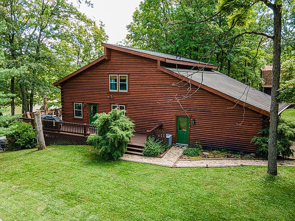 This visually stunning, premier lakefront log home on a beautiful Candlewood Lake cove is a must see! The large kitchen has all stainless-steel appliances and Corian countertops with integral Corian kitchen sink. A dramatic great room features a massive stone fireplace as the focal point, with a spacious open concept visually connecting both the kitchen and dining area. All of this opens from sliding glass doors to a dramatic wrap-around deck, with beautiful views of the lake. A large bedroom and full bath are also located on the first floor. Upstairs, a second-floorloft overlooks the great room below, and leads to two additional, fully private bedrooms and another full bath. The lower walk-out level has been completed renovated, featuring heated LVT floors, and a large, open concept family room and rec room opening to a walkout covered porch. An additional bedroom, full bath, and office nook are also located on this level. From both the first-floor deck and lower-level porch, stairs lead down to the spacious private dock, with two fully covered boat slips and electric lifts. A two-car garage, separate storage shed, and a paved golf cart path provides easy access to the lake from the driveway and garage. Always be on vacation in this outdoor lover's dream!