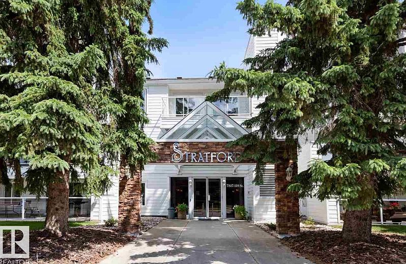 Excellent location in the heart of Belgravia just steps from the river valley & close to the U of A, hospitals & LRT. The Stratford has had major renovations including new windows, fiberglass roof, Hardie Board siding, upgraded common areas, heating, fire alarms & security system. This spacious two bedroom unit has a large patio withs views of the trees. The large living room, which could accommodate a grand piano, has a gas fireplace, patio doors onto the deck & dark vinyl plank floors throughout. The updated white kitchen has new counters, new stainless appliances, subway tile backsplash, plus a BIG pantry. The master bedroom has a GORGEOUS modern 4 pce ensuite with large shower & jacuzzi. The 4 pce guest bath is also renovated with high end materials. In suite laundry, underground parking, car wash, exercise & social rooms offer all the conveniences for a carefree lifestyle. Freshly painted and new hardwood floods installed in July. Cats and small dogs allowed, larger dogs negotiable.