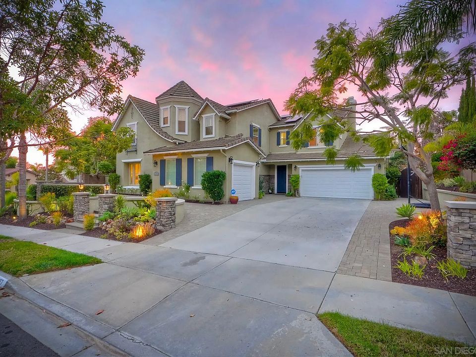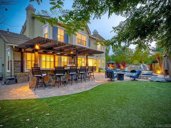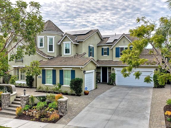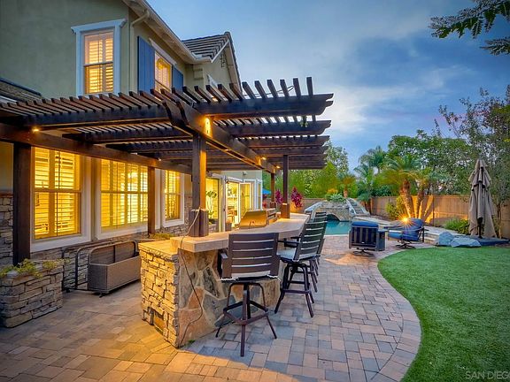 Stunning and highly appointed, this exceptional 5-bedroom, 4.5-bath residence offers 4,225 sq ft of refined living in one of Carlsbad’s most desirable communities, complete with owned solar. Pride of ownership radiates throughout this bright, open-concept home, ideally situated on a spacious corner lot and meticulously upgraded to impress even the most discerning entertainer. A convenient bedroom with ensuite bathroom on the first floor provides flexibility for guests or multigenerational living. The home also features an upstairs spacious open loft, perfect for an additional living area, media room, or play space. The heart of the home is the professional chef-inspired kitchen, showcasing sleek stainless Dacor appliances, an expansive island perfect for gatherings, and generous counter space designed to elevate your culinary creations and hosting experiences. The resort-style backyard is an entertainer’s dream—complete with a fully equipped outdoor kitchen, sparkling pool with waterslide and grotto, and multiple spaces for dining, lounging, and celebrating outdoors all year long. Retreat to the luxurious primary suite, featuring a spacious layout, an elegantly upgraded bathroom with soaking tub and steam shower, and an oversized walk-in closet offering exceptional storage and comfort. With its thoughtful floor plan, elevated finishes, and unmatched indoor-outdoor living, this home embodies Southern California lifestyle at its finest.