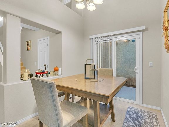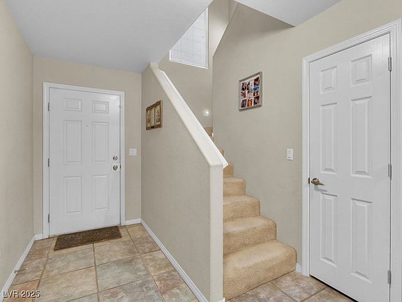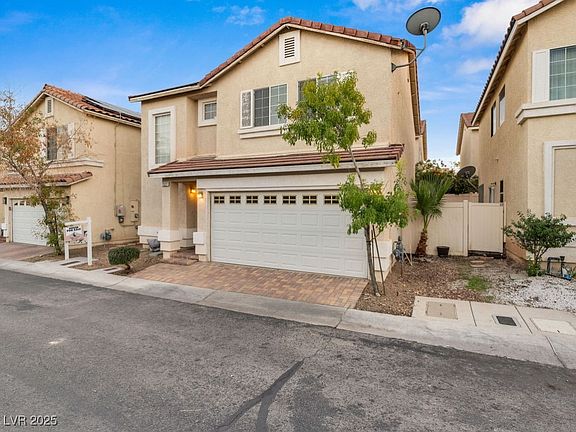 Welcome to this inviting 3-bedroom, 2.5-bath home nestled in the desirable Southwest Las Vegas community. Built in 2005, this well-maintained residence offers approximately 1,502 sq ft of living space and is ideally located just minutes from the I-215 corridor, shopping, dining and entertainment. Step inside to discover an open-floor concept with tile flooring and fresh carpet underfoot. The living and dining areas flow seamlessly into the kitchen, perfect for everyday living and entertaining alike. Upstairs are three comfortable bedrooms including a primary with en-suite bath and ample closet space. Outside, the manageable lot accommodates an easy-care backyard and two-car garage, making it perfect for both low-maintenance living and weekend relaxation. Community amenities include a pool, playground and basketball court.