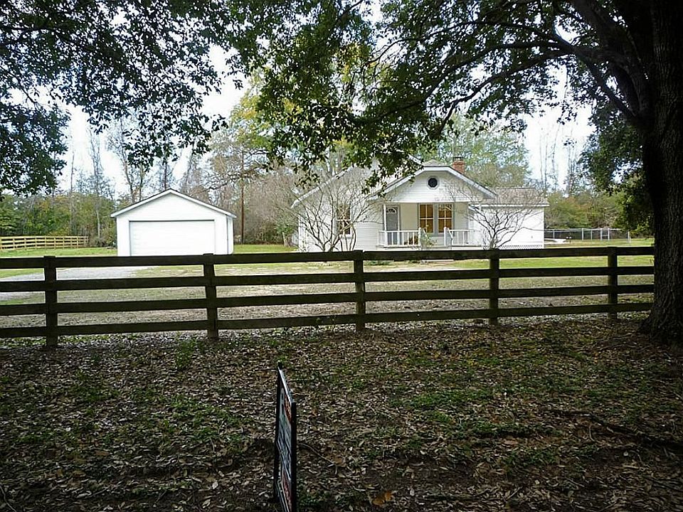 Quaint cottage sitting on a 1+acre private secluded wooded lot. Property is all fenced in with a gated driveway. Cozy den with a wood burning fireplace & brick wall. Lots of original hardwood floors. All bedrooms down, two full updated bathrooms both w/dble sinks. Large formal dining area. Upstairs gameroom. Screened in back porch. Heated in ground pool w/spa all fenced in. Storage building. Located just minutes to all 3 schools, shopping & amenities. Refrigerators, washer/dryer included.