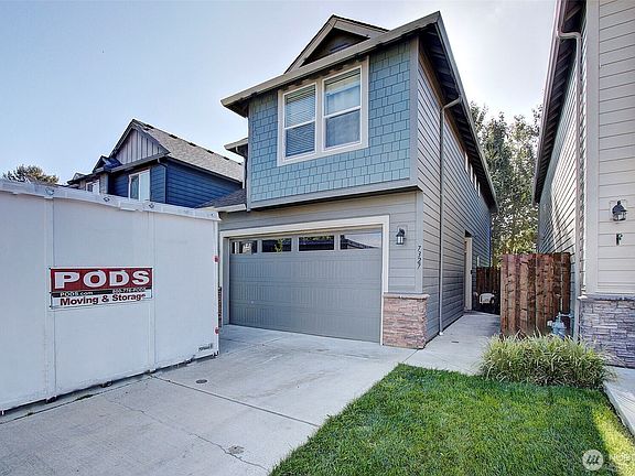 Tucked in Ridgefield’s Pioneer East, this 2020-built 3BD/2.5BA home backs to rare greenspace and pond—no rear neighbor, just trees. Main level offers open kitchen with granite, island, stainless appliances, and durable LVP flooring. Updates include new carpet throughout upstairs/stairs and new bath countertop & sink (Sept ’25). Primary suite has walk-in shower and closet; all bedrooms feature walk-ins. Covered deck overlooks fenced, sprinklered yard. Community trails, play park, and sport court; quick I-5 access for easy Vancouver/Portland commute. Near shops/dining with growing amenities. No HOA rental restrictions (per CC&Rs). Buyer to verify info.