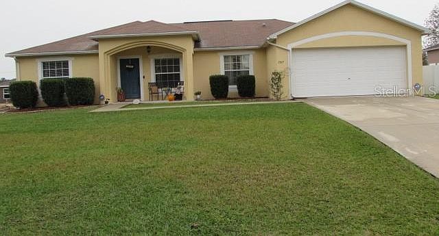 This home is move-in ready! From the elegant and spacious kitchen with its ample pantry to the Formal Dining room, it is tastefully appointed. With an inside laundry room and a split plan, this light and bright home is a joy. The Master Bedroom features an En-suite bathroom with a beautifully updated shower. (Custom glass door to arrive next week) and a deep soaking tub as well as a roomy walk-in closet. The backyard displays a lovely peach tree that produces over a hundred fruit per season and with no neighbors behind for either a quiet retreat or a perfect place to play. This area is up and coming with new construction homes in the neighborhood and is located in the desirable deed restricted section 10 of Marion Oaks. From the charming front porch to the private backyard come and walk into your new home today!