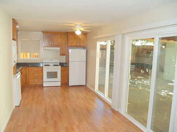 This unique cottage style single story house on a private tree lined street has been updated and looks great! Laminate floors, upgraded bathroom, mini split heating/cooling system in bedrooms and living room. Gas stove, refrigerator. Ceiling fan/light in dining room, large closets in bedrooms, linen closet in hall, good size fenced back yard and carport. Walk to Grocery Outlet, Dollar Tree, restaurants and other shopping. Easy access to 580/680 freeways, BART and public transportation.