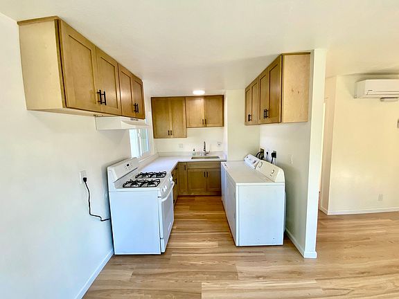 Wow! Rarely available 1 bedroom HOUSE. Come home to your own private, detached home next to a babbling creek. Located at the end of a quaint row of bungalow homes with covered parking, this home has been updated throughout with dual pane windows, new laminate flooring, updated kitchen and bathroom, inside laundry, and mini split heating/AC.