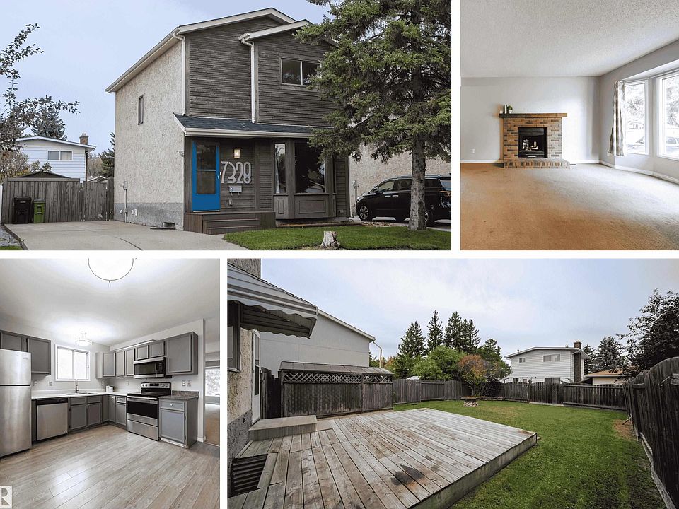 A perfect starter home or investment opportunity in the desirable west-end community of Lymburn, just minutes from West Edmonton Mall, parks, schools, public transit, and the YMCA. This bright, well-kept home features a spacious open-concept living and dining area, perfect for family gatherings. The refreshed kitchen offers newer stainless steel appliances (2019+), ample cupboard and pantry space, and access to a large fenced backyard with a deck, fire pit, and storage shed. Upstairs are three generous bedrooms, including a large primary suite with a full wall of closets. The basement is partially finished with a rec room, laundry, rough-ins for a future bathroom, and tons of storage. Enjoy the convenience of a long front driveway with extra parking. Recent updates include a new roof (2020) and a new hot water tank (2024). Affordable, functional, and located in a family-friendly neighbourhood, this home is move-in ready and full of potential.