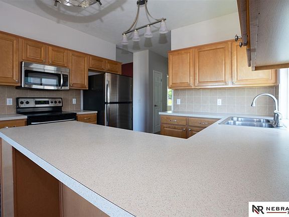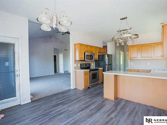 You get in all in this meticulous kept house with location and lay out. There is no shortage of space in this 4 bed, 3 bath home. Your master includes an en suite and you'll enjoy some privacy as the two main level spare bedrooms are on the other side of the home. The kitchen, with new flooring, includes an eat-in space that over looks the entertainment deck. You'll find a 4th bedroom and additional bath in the finished walk out basement. This house has been upkept well and is move in ready. All bathrooms have new flooring and there is fresh, new paint thorough the home. In Millard school district you are waking distance from a park and a short drive to stores, foods and schools. This is a must see.