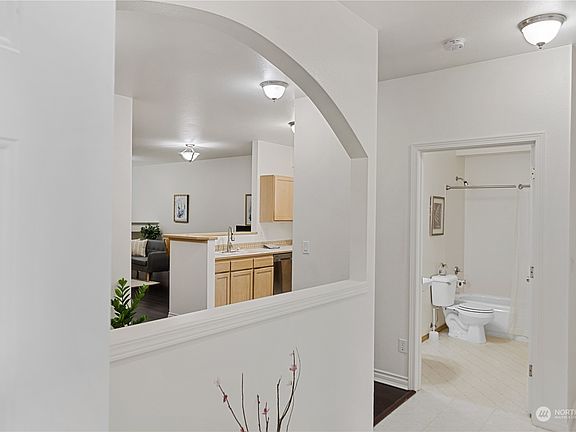 GREAT LOCATION AND PRICED TO SELL! This 2 bed 2 bath condo is located in the serene Garden Grove community, set back from all the hustle and bustle, lending it to a more relaxed and stress free lifestyle while close to everything. Features large living and dining areas, primary bed w private bath, garage+ 1 parking spot, hardwood floor w/tiled hall & newly painted walls and doors. Access to deck through primary bedroom or living room. Location is great to Boeing, freeway, transportation including future light rail, and markets. Investors - No Rental Cap. Garbage, sewer,water included with HOA. Ground floor with access to front and back. Enjoy this quiet community to the fullest. Enjoy immediate equity- don't miss out on this opportunity