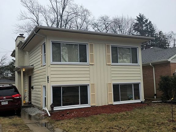 Incredible Value in East Glenview with New Trier Schools! Park-like setting 5 bedroom, 2 full bath home with master bedroom addition and room allocated for master bath. Charming beamed ceilings, hardwood floors, wood burning fireplace. Newer roof, windows. Impressive brand new front door. Newly painted. Dining room and family room with picture windows overlooking private back yard and concrete patio for summer BBQ's. Sun filled updated kitchen, bedrooms with great views. Lots of potential for the new Owners! Won't last at this value!