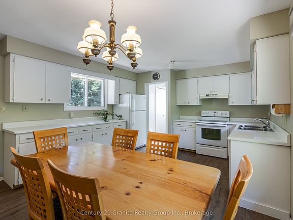 Welcome to this lovingly maintained 3-bedroom, 1.5-bathroom home, perfectly situated just 5 minutes from Minden's vibrant downtown, the riverwalk, and the Gull River. Nestled on a private 0.8-acre parcel, this property offers the ideal balance of comfort, convenience, and space. Step inside to discover a bright and functional layout featuring an open-concept kitchen and dining area with a seamless walkthrough into the living room. Large windows frame the natural surroundings and fill the home with sunlight. The main level includes three spacious bedrooms, highlighted by a primary suite with a 2-piece ensuite, and a 4-piece bathroom for family and guests. Thoughtful storage solutions are built throughout the home, making it both practical and welcoming for everyday living. The partially above-ground basement is filled with natural light and provides excellent potential to expand your living space whether as a rec room, home office, or hobby area. Outside, the home is set back from the road and complemented by a spacious carport just steps from the entrance. At the back of the property, enjoy a generous two-tier yard, perfect for gardening, outdoor entertaining, or simply relaxing in a private setting. Whether you're a young family looking for your first home or seeking a peaceful place to retire, this property has so much to offer. Book your private tour today!