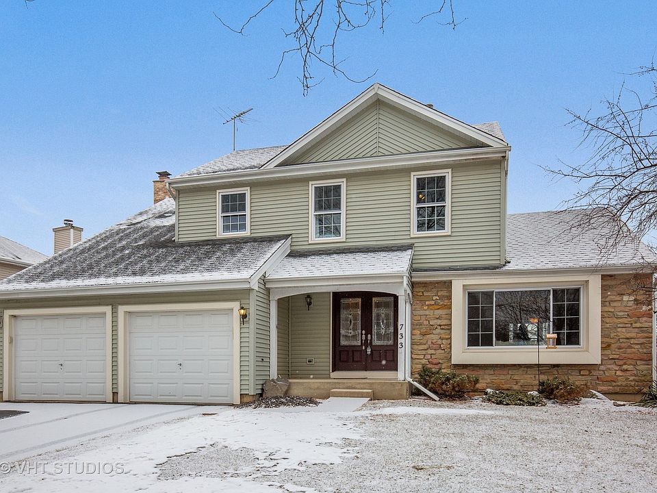 Beautiful home on a quiet street near Huffman Park is NEWER in all the right places. Gorgeous remodeled kitchen with GRANITE counters, dark MAPLE cabinets, portable island w/wine rack, newer appliances & huge pantry is OPEN to family room with HARDWOOD FLOORS and cozy fireplace. HUGE master suite with volume ceilings and a master bath with fantastic walk in shower. Nicely sized bedrooms 2 and 3 and bedroom 4 has been opened to accommodate a home office. Main bath beautifully remodeled too! Roof & siding replaced in 2003, doors & windows throughout 2014, sliders 2009, completely replaced driveway in 2011. Nice finished basement w/plenty of storage shelving The location is ideal with park that has lighted tennis and basketball courts, playground and a splash pad. Within walking distance to shopping, new movie theater and the lovely downtown area offering restaurants & a music venue as well. Minutes from I90, Metra, the Randall Road corridor and the Fox River Bike Trail spanning 40 miles.