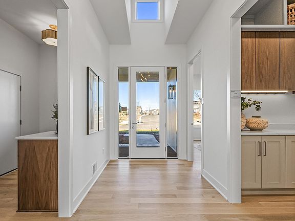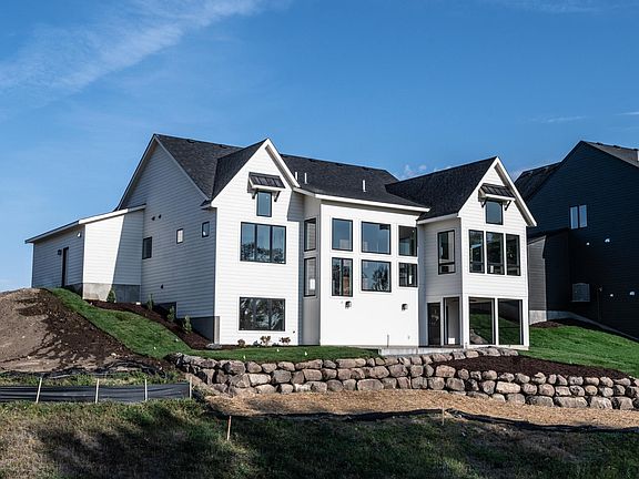 The timeless modern styling of this home is accentuated with industrial-looking metal brackets, metal accent roofs, and clean-recessed siding panels. This home has an ideal setting close to town, with elevated views of a large wetland, trees, the Minnesota River Valley, and historic downtown Chaska. Stunning Marvin windows on every side pair with unique ceiling vaults and a one-of-a kind floor plan. This home features remarkable outdoor living with a four-season porch, lower-level screen porch, and beautiful patio. Enjoy the oversized heated 3 car garage during the winter months. Inside you will find highs ceilings, real hardwood white oak floors, an abundance of custom cabinetry, quartz countertops and backsplash, an amazing stair case and full wall of windows. A true must see home! Our trademark age-in-place design showcases how to make this your forever home! Other lots to choose from. Build your Custom Home on our lot or yours!