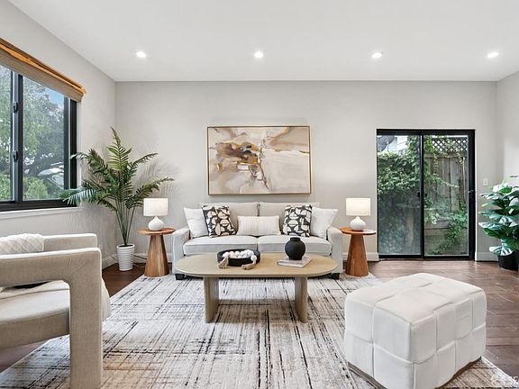 Immaculate End-Unit Townhouse-style condo in Prime Downtown Location! Perfectly positioned between Burlingame Avenue and Broadway's vibrant shops, restaurants, and cafes, this two-level residence offers a rare blend of privacy and convenience. Enter through a serene courtyard into sunlit living and dining spaces, enhanced by high ceilings, skylights, and a chic wet bar. The gourmet kitchen boasts quartz countertops, stainless steel appliances, a farmhouse sink, and custom cabinetry, while a convenient half bath and office nook completes the main level. A private patio just off the living area is perfect for barbecues, morning coffee, or unwinding outdoors. Upstairs, the spacious primary suite is a true retreat, highlighted by vaulted ceilings, an elegant walk-in shower, double vanity, radiant heat, and generous closet space. A second well-sized bedroom and full bathroom provide flexibility for family, guests, or a home office. Modern amenities include in-unit laundry, abundant storage, and secure two-car underground parking. Thoughtfully updated since 2013, this home seamlessly blends timeless charm with contemporary comfort all in one of Burlingame's most sought-after walkable locations.