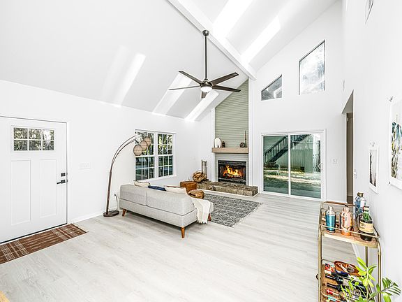 This fully renovated home features soaring ceilings and boasts one of the largest lots available in this price range on James Island! The living room centers around an impressive fireplace with coastal woodwork, drawing the eye upward and accenting the high ceilings. The abundance of windows in this open space allows natural light to fill the welcoming atmosphere. A dining room seamlessly connects to the kitchen, complete with a bar top, creating a fantastic open floor plan ideal for entertaining. The modern kitchen is designed for contemporary living and features sleek quartz countertops, an oversized stainless steel farmhouse sink, stainless steel appliances, and a large triple window for additional light. Luxury vinyl plank flooring extends throughout the first floor, including thekitchen. Step outside to the backyard patio, where you can enjoy a spacious yard partially shaded by trees and perfect for grilling. Two additional bedrooms are located downstairs and share a beautifully remodeled full hall bath that reflects the home's modern aesthetic. Upstairs, you'll discover a spacious primary suite with vaulted ceilings and a large walk-in closet. The luxuriously appointed bathroom includes a standing shower and sleek, modern finishes. Located just 10 minutes from Downtown Charleston's historic sites, shopping, and entertainment and a quick 10-15 minute drive to Folly Beach, this fantastic location on James Island offers the best of both worlds. Enjoy nearby local eateries, a movie theater, and excellent public schools. This full home renovation is well priced and ready for move in!