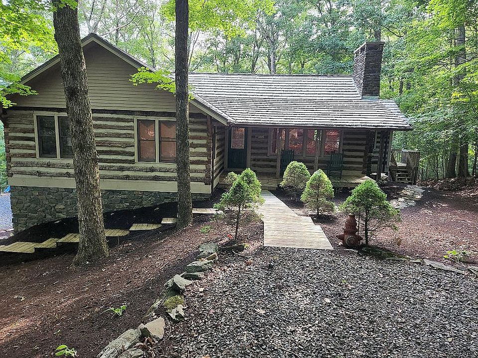 This ANTIQUE LOG CABIN in STONEBRIDGE has a charming rustic elegance with an Open Concept that everyone is looking for! The main level features an open floor plan with kitchen, dining, and great room combo with vaulted ceilings. Enjoy a modern kitchen including granite countertops, generous cabinet space, and island with extra seating. The great room features floor to ceiling stone wood burning fireplace and dining area has stone gas fireplace. Wide plank wood flooring throughout main floor. All 3 bedrooms and laundry room are on the MAIN FLOOR - a rare find in Stonebridge. Primary bedroom has a very large walk-in closet and access to back deck. The lower level is tiled and has a bonus room, office and full bathroom. Cabin has a single car garage but is oversized with extra rooms for storage. Cabin has newer composite roof. Buyer's Agent Welcome - 3% Call 954-270-7543