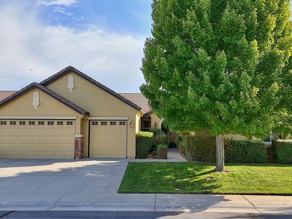 Located in the desirable River Oaks community of Galt, this spacious single-story home features soaring high ceilings, 5 bedrooms, and 3 full baths. The generous kitchen offers granite counters, stainless steel appliances, an abundance of cabinetry and a convenient built-in desk area. A separate family room off the kitchen creates the perfect space for gathering, while the formal living and dining rooms showcase views of the sparkling pebble-tec pool and inviting patio. Enjoy covered patios off both the family room and the primary suite, enhancing indoor-outdoor living. The primary suite includes dual sinks, a large shower stall, sunken tub, and walk-in closet. Custom bookcases transform a hall bedroom into a charming library or office. Completing the home is a 3-car garage with epoxy flooring, combining style and functionality. A rare blend of comfort, elegance, and thoughtful design in a sought-after neighborhood. Come Home!