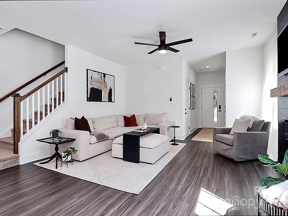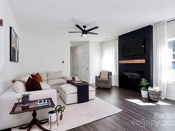 Imagine yourself relaxing or entertaining family & friends in the privacy of the beautifully landscaped fully fenced backyard with extended patio and covered porch. This Duet Style townhome host 3 bedrooms/2.5 baths + 1 car garage; upgrades throughout. Kitchen features designer finishes of quartz countertops, subway tile backsplash, SS energy grade Appliances, and Center Island w/seating. Open Living floorplan on Main level with stunning electric fireplace and luxury vinyl plank flooring, updated lighting + natural lighting.  All bedrooms upstairs: Primary bedroom host 2 walk-in closets featuring custom closet built-ins; attached bath w/dual sink vanities and shower finish out the primary space. Both secondary bedrooms have access to the large hallway full bath with tub/shower. Laundry upstairs. Did I mention? NO HOA! This property is conveniently located near NoDa, Camp North End, easy access to I-77 and Uptown. Nearby Druid Hills Park has been recently renovated by Charlotte Parks & Rec.