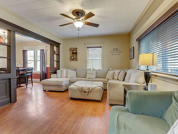 This exceptional property offers a blend of timeless charm and modern updates, boasting a main home brimming with original character. Situated in a desirable location, the property includes a 400 sqft detached second "home" perfect for a man-cave, she-shed, yoga studio, workshop, playroom, or in-law suite. The main residence features a welcoming heated front porch and built-ins between the living and dining areas as well as a convenient half bath. The kitchen adorned with crisp white cabinetry offers lots of cabinet space. Upstairs, the primary bedroom boasts ample closets, accompanied by two additional bedrooms and an updated hall bath featuring soaring ceilings. The basement adds functionality with a workshop-style full bathroom. Outdoor amenities include a two-tiered deck, firepit, and fenced yard, perfect for outdoor entertaining. The standout feature of the property is the detached second home, offering a spacious living area with beamed ceilings, a storage room/closet, and a full bath. The space is currently heated and cooled with portable units. An oversized one-car garage provides extra storage and workshop space. Recent updates include new exterior doors, a new garage door with opener, a new fridge, roof replacement for the second home, and the installation of a wood fence, all completed within the past few years, enhancing the property's appeal and functionality. This property represents a unique opportunity to enjoy a blend of historic charm and modern convenience, this one won't last!