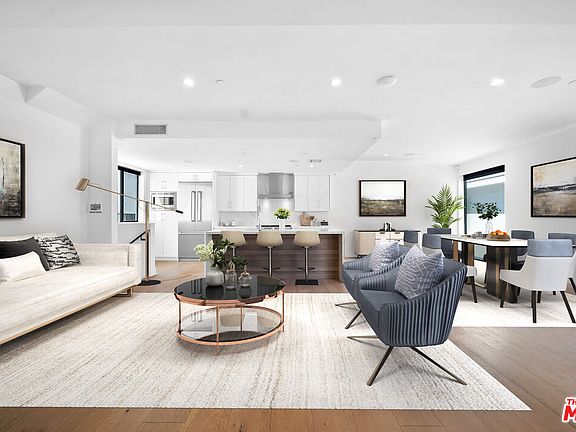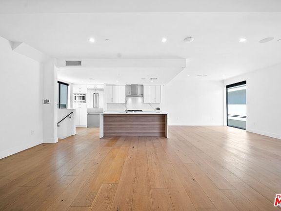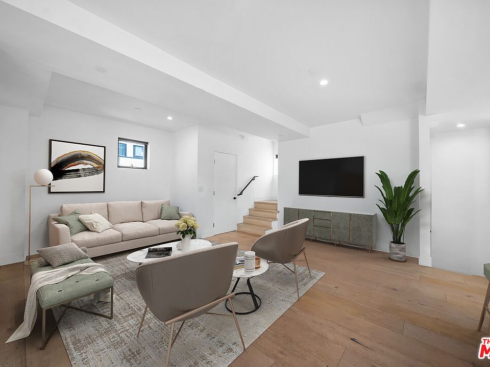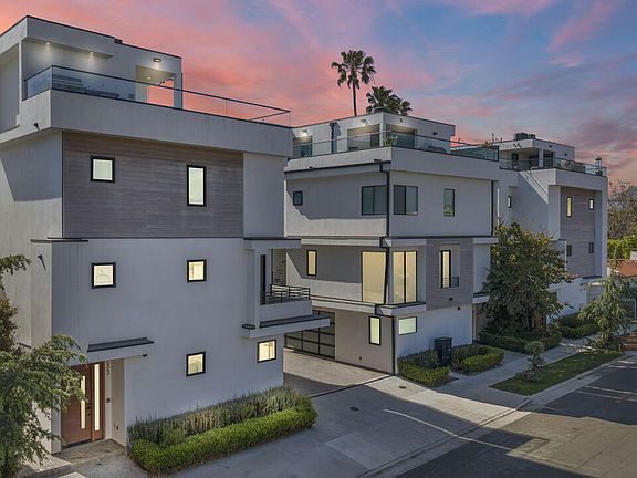PRICE REDUCED! Newer Construction 3BR/4BA Corner Unit with Rooftop Deck + Iconic Views! Modern home located in the heart of Hollywood's Studio District. Built in 2018, this spacious home features an open-concept floor plan with natural hardwood floors, recessed lighting, and abundant natural light. The main level includes a versatile bedroom/office, powder room, and direct access to a private 2-car garage.The second level opens to a large great room and chef's kitchen with quartz center island, stainless steel appliances, gas range, and built-in ceiling speakers. Three additional en-suite bedrooms are located on the upper levels, each with generous closet space and updated bathrooms. Smart home features include app/voice-controlled lighting, in-ceiling speaker system with 4 zones and individual amp controls, MyQ smart garage access, and security cameras at all entry points. The private rooftop deck offers wrap-around VIEWS of the Hollywood Sign and Downtown LA, complete with a built-in BBQ and multiple seating areas. Two guest parking spaces included. Prime location near Netflix HQ, Paramount, Sunset Gower, Raleigh Studios, and Larchmont Village.