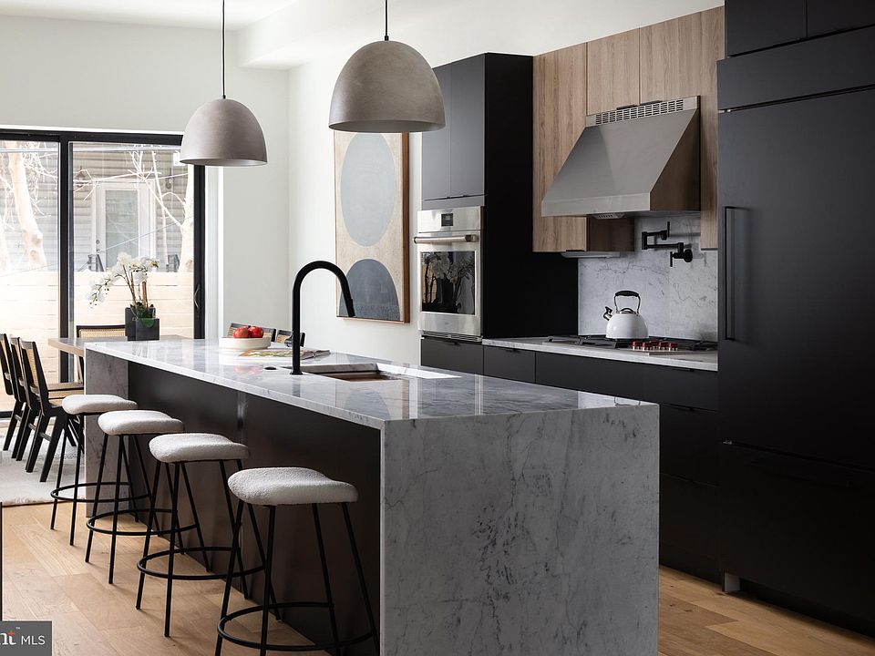 An architectural and striking new construction home for sale in Fairmount, this brand new residence is teeming with contemporary design and modern touches. Featuring a stunning roof deck, two car parking, and spacious sun-soaked living spaces. The open floor plan is over 3,500 square feet and features four (4) bedrooms and four and a half (4.5) bathrooms, with several private outdoor spaces! Light pours down from the skylight onto the island of the chefs kitchen which comes fully equipped with Wolf and Sub Zero panel-ready appliances, marble countertops and two tone kitchen cabinets. Adjacent to the kitchen is a spacious wet bar which offers additional cabinet storage, counter space, wine fridge and prep sink. Leading up to the second floor, this living level offers two oversized bedrooms, each with an on-suite bathroom with imported tile and hardwood vanities. Passing the full walk-in laundry room and hallway closets the floating stairs lead up to the primary living level. An additional dry bar, enormous primary bedroom , walk-in closet and primary bathroom await on the third floor. The primary bathroom is especially inviting with radiant heat s floors, double shower head system and a soaking tub. To bring the vision to a dramatic close, you will be greeted by a panoramic rooftop view of center city Philadelphia. Just steps to all of the attractions of Fairmount Avenue, from local bars and restaurants, to the trails along Boathouse row, all just a short drive from Center City. *This home comes with a full 10 Year Tax Abatement and 1 Year Builder's warranty* *Parking is setup for electrical charing station for electric vehicles i.e Tesla*
