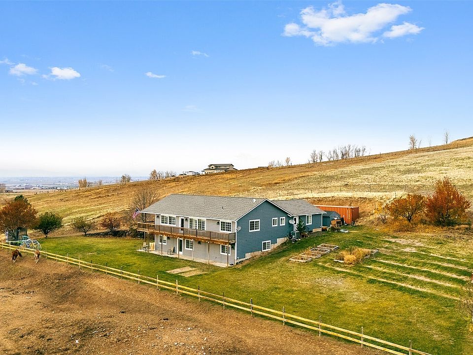 Beautifully updated 4,024 sqft hillside home on 6.43 acres with a valley views and Mt. Rainier! The main level features an open-concept layout with picture windows, vaulted ceilings, and a farmhouse-style kitchen with granite countertops, large island, walk-in pantry, and spacious dining area. The main-floor primary suite offers a private retreat with an en-suite bath and peaceful views. Downstairs includes a secondary living area and 5 en-suite bdrms. A separate 747 sqft, 2-bdrm ADU with full kitchen, 3/4 bath & laundry- provides great flexibility for rental income or multi-generational living. KRD irrigation, mature fruit trees, garden space, and fenced pastures complete this versatile property ready to be your next home or investment!