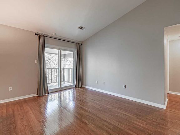 Welcome to PRIVATE & UPGRADED! VAULTED CEILINGS and HARDWOOD FLOORING makes this unit UNIQUE along with the custom, lighted built-in! Kitchen features GRANITE COUNTERS, WHITE cabinets and a brand new STAINLESS STEEL fridge plus plenty of cabinets, pantry and space for a table!! VAULTED Master SUITE has it's own PRIVATE FULL bathroom, TWO closets & bonus linen closet! FULL SIZE washer & dryer STAY with home! Spacious vaulted second bedroom enjoys the other FULL bathroom! Contemporary paint colors & 6 panel doors! Step out to your private COVERED deck..just perfect for you to BBQ or enjoy your morning coffee. So nice & quiet you can work from home out there! It backs to trees & has an additional storage locker! Your RESERVED parking spot is one of the CLOSEST to the entrance (#126) for your convenience! Enjoy the community POOLS & clubhouse! Triple A Rated Parkway Schools! All nestled in a well maintained community! Quick access to Hwy 141! Virtual Tour & 3D walkthrough!