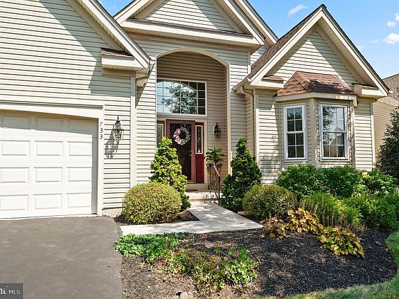 Welcome to 733 S. Settlers Cir., a spacious and beautifully maintained 3-bedroom, 3-bathroom home located in the award-winning active adult community of Legacy Oaks in Warrington, a 55+ community. This sought-after Doyle model offers over 2,350 square feet of elegant living space and includes an attached 2-car garage. The first floor boasts 9-foot ceilings and features a formal dining room, a gracious living room, and an eat-in kitchen equipped with stainless steel appliances, including a new GE electric range, microwave, and side-by-side refrigerator. The kitchen is enhanced with granite countertops and a stylish tile backsplash. The light-filled family room features large windows overlooking open space, a gas fireplace, surround sound, and a 2-story vaulted ceiling. Just off the kitchen, the sunroom provides access to a privately situated paver patio. The spacious primary suite on the main level is a true retreat, offering two walk-in closets and a luxurious en-suite bath with a soaking tub and glass shower doors. The second and third bedrooms are located on the second floor and share a conveniently located hall bathroom. The main floor also includes a laundry room and a powder room. Additional features of this home include a new roof (installed in 2016), a high-efficiency heater and AC unit (installed in 2019), a professional security system, and new outdoor hand railings at the front and back (installed in 2024). A unique feature of this home is the new polyurea base with a polyaspartic top coat on the basement floor, garage, front porch, and walkway. Legacy Oaks is the premier active adult community, offering a resort-style lifestyle with amenities such as a clubhouse, large outdoor pool, tennis and pickleball courts, a gym, a billiards room, a library, and a vibrant calendar of social activities. Enjoy the convenience of nearby shopping, just five minutes away, and the beauty of Bucks County’s many attractions. Please see the attached list of upgrades for more details.