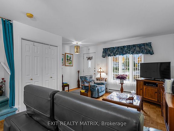 FREEHOLD TOWNHOME - Well located within walking distance to grocery stores, pharmacies, and the Hawkesbury General Hospital, this inviting townhome offers comfort and convenience. The main floor features an open-concept layout with a practical U-shaped kitchen overlooking the dining and living areas. A patio door leads to your private backyard complete with a deck and storage shed - perfect for relaxing or entertaining. A convenient powder room completes the main level. Upstairs, you'll find two spacious bedrooms, including a primary bedroom with its own private balcony, as well as a full bathroom. The partially finished basement provides versatile living space that can easily adapt to your needs, along with a large laundry room offering plenty of additional storage. The property offers one large parking space that can allow to cars. All appliances - including a standing freezer and second fridge - plus some furniture are included, making this a move-in-ready opportunity! Recent energy efficient heat pump was installed in 2024. Ideal for first time home buyers - NO condo fees!